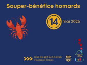 Notre souper-bénéfice homards sera de retour le jeudi 14 mai 2026 à 18h au club de golf Le Summerlea.